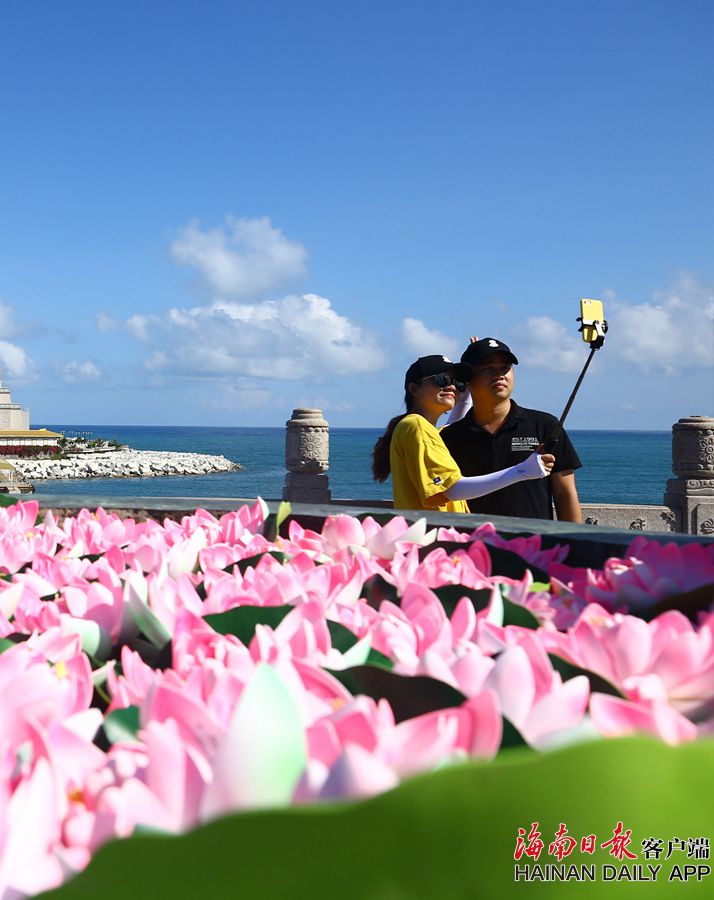 6月8日,一情侶在三亞南山景區游覽、自拍。 據海南日報客戶端|記者 袁琛 特約記者 陳文武 攝影報道