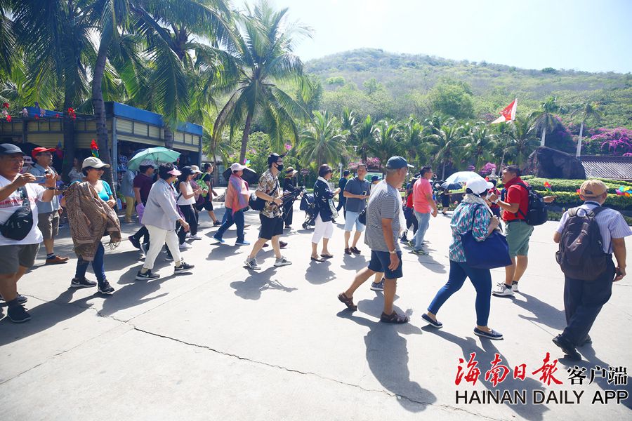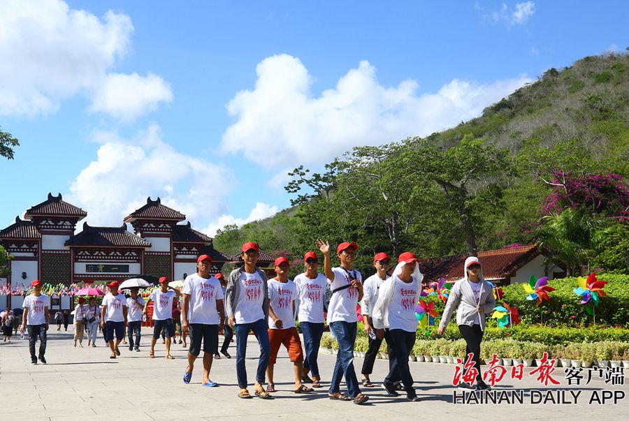 6月8日,來自海南萬寧地區的同學會聯誼游在三亞南山景區游覽。 據海南日報客戶端|記者 袁琛 特約記者 陳文武 攝影報道
