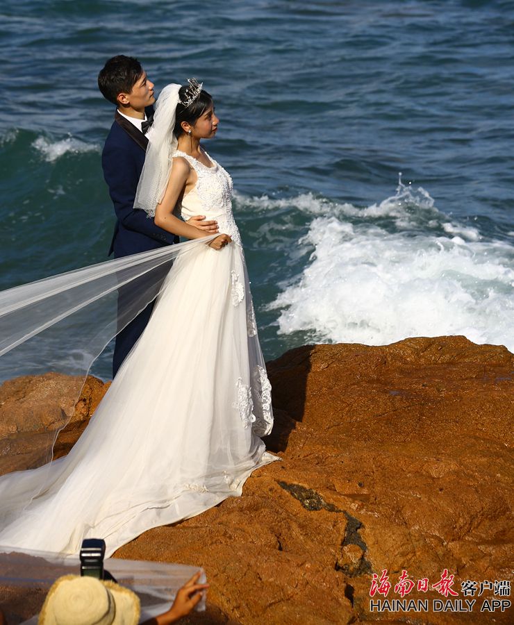 6月8日,一對新人在三亞南山景區海邊拍攝婚紗照。 據海南日報客戶端|記者 袁琛 特約記者 陳文武 攝影報道