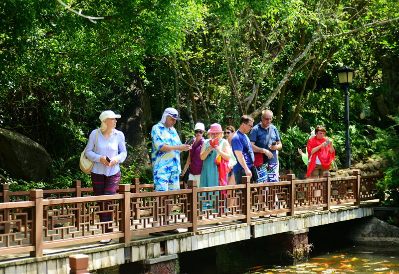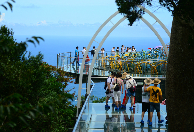 隨著仲夏時節(jié)到來,天氣較為炎熱,熱帶雨林中的涼爽環(huán)境受到中外游客的青睞。端午節(jié)當(dāng)天,不少市民游客在蘭花谷納涼賞花。而景區(qū)中的過江龍索橋、大佛石全海景玻璃棧橋、滄海樓、婚禮廣場等景點(diǎn),不僅海風(fēng)習(xí)習(xí),更可觀碧海藍(lán)天的美景,吸引眾多游客紛紛拍照留念。