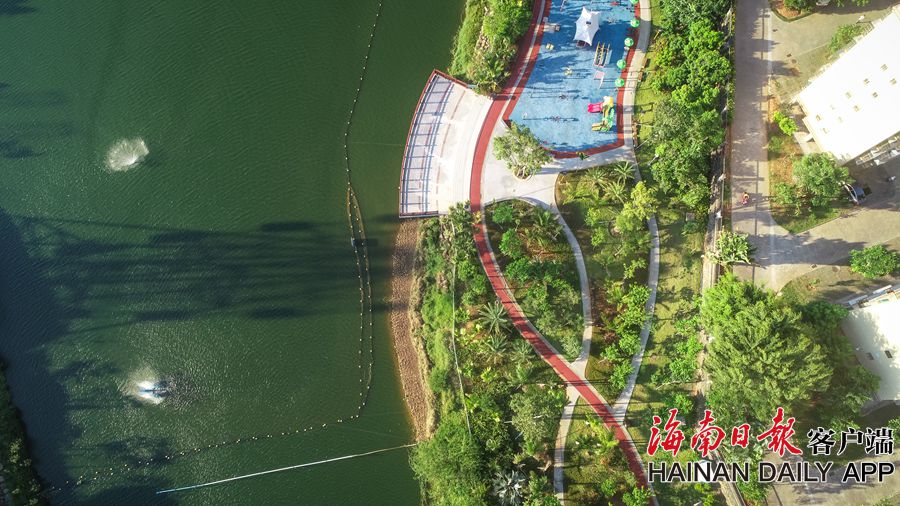 俯瞰位于文昌文城鎮的霞洞湖水生態綜合整治工程。