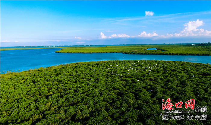 美麗的東寨港紅樹林,為鳥類提供了理想的棲息場所。 見習記者 陳長宇 通訊員 馮爾輝 攝