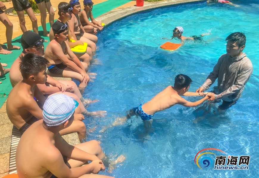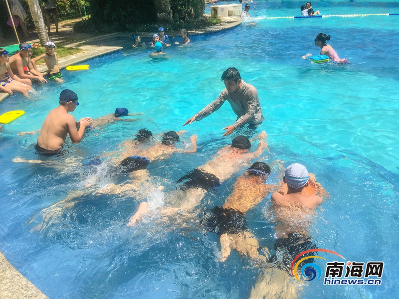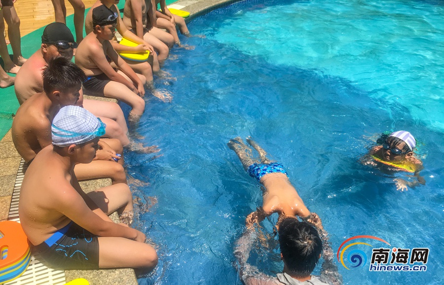 海南旅游頭條、南海網、南海網客戶端海口6月24日消息(海報集團全媒體中心記者 張茂)近日,在海口市瓊山區一小區游泳池,教練在教孩子學習游泳。在持續的高溫天氣下,既可消暑、又能學習一技之長的游泳運動成了椰城孩子們的選擇。