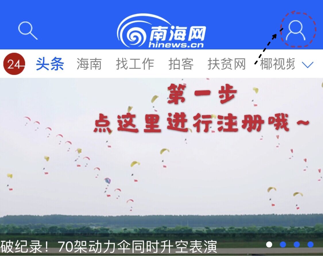 第一步:下載南海網(wǎng)客戶端,點(diǎn)擊右上角進(jìn)行注冊。