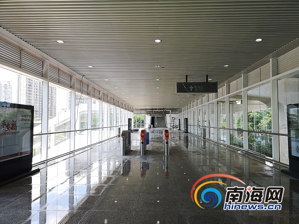 記者在現場看到,秀英站臺的安檢設備、售票臺、自動售票機、檢票閘、電梯等配套設施已經就位,保潔人員正在進行打掃和清潔。站臺的天橋限高4.5米,橫跨道路兩旁,到站的旅客通過人行天橋就可以過馬路,可以有效保障旅客安全。此外,站臺還設置了網約車上、落客區,公交站臺、停車場、公共廁所等公共配套設施,方便旅客出行。