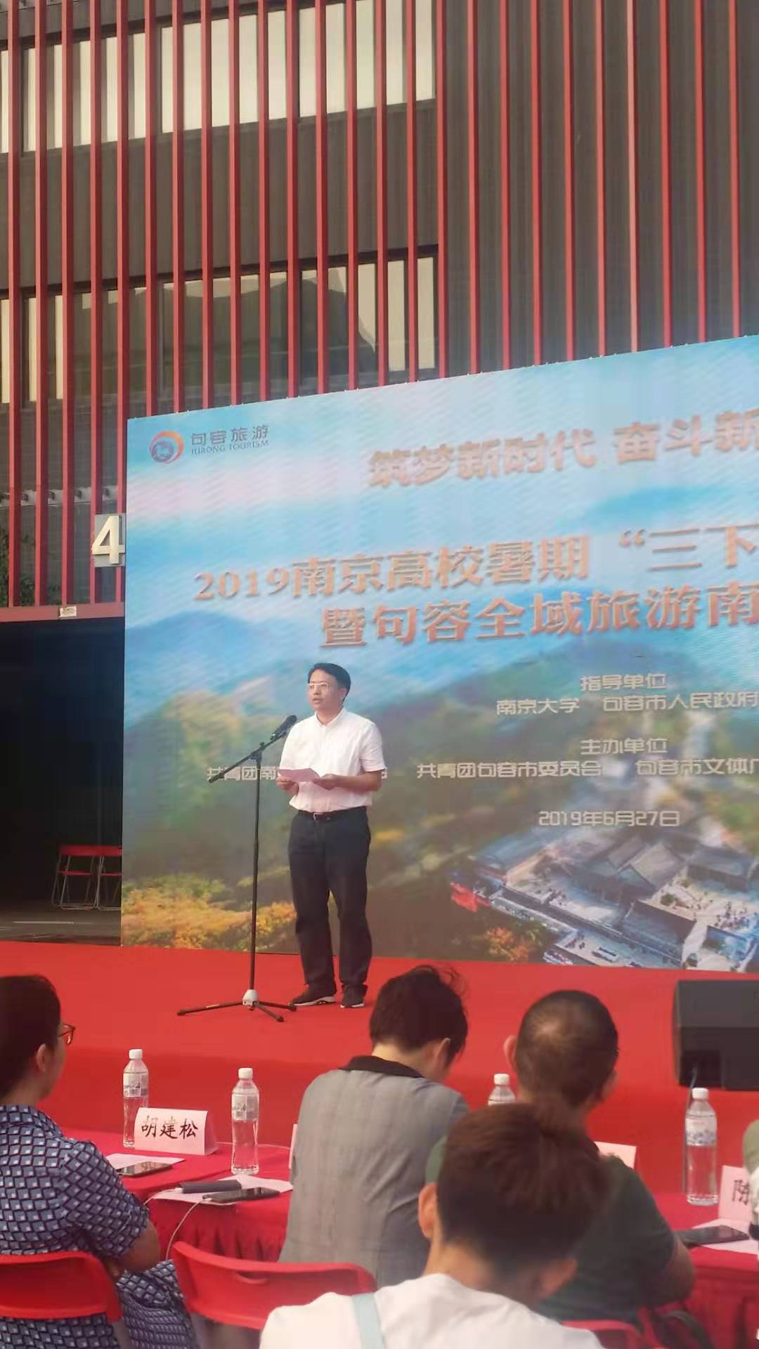 在啟動儀式上,共青團南京大學委員會書記索文斌致歡迎辭,他表示南大將開放資源與句容合作,一起助推句容全面發展。同時也感謝句容團市委和句容文體廣電和旅游局開展暑期“三下鄉”社會實踐活動,通過實踐幫助大學生了解社會基層,投身鄉村振興,以實際行動踐行一名大學生應有的責任感和使命感。