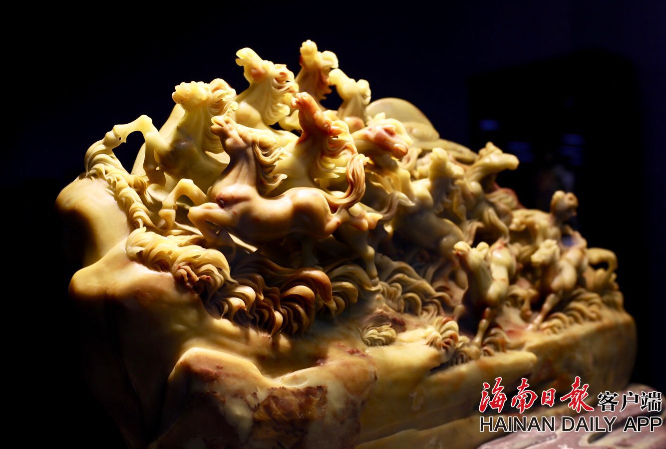 現場展出中國工藝美術大師麻雙鳴500余件玉石雕藝術作品,同時展出特邀中國工藝美術大師團的古典家具、黃楊木雕、宜興紫砂、景德鎮陶瓷、青田石雕、壽山石雕、海南黃花梨家具等多個品類工藝美術藝術作品。 據海南日報客戶端|記者 陳若龍