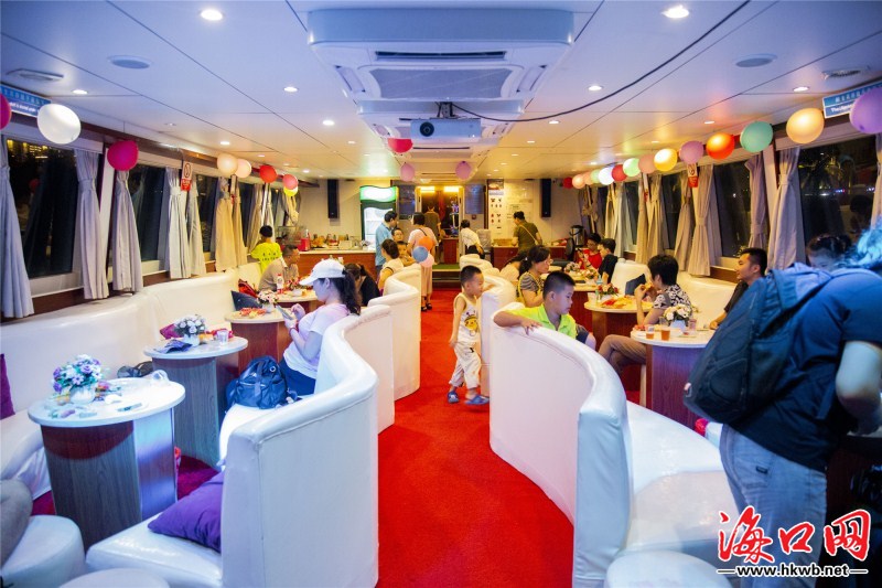 據悉,夜游海口灣觀光航線由海口碧海龍騰水上巴士旅游觀光有限公司運營,該航線運營公司相關負責人介紹道,該公司將推出58元/人的惠民價船票,并可免票帶一位1.4米以下兒童。在暑假期間還將推出優惠活動,凡持有小學生證的小學生一律免票,但出于安全考慮必須由家長陪同監護。此外,該公司已經推出每周五至周日的白天暢游航班,發班時間為16時30分至18時30分,航程120分鐘,需提前一天預訂。船上可免費垂釣、K歌,回程還有機會觀賞海上日落。