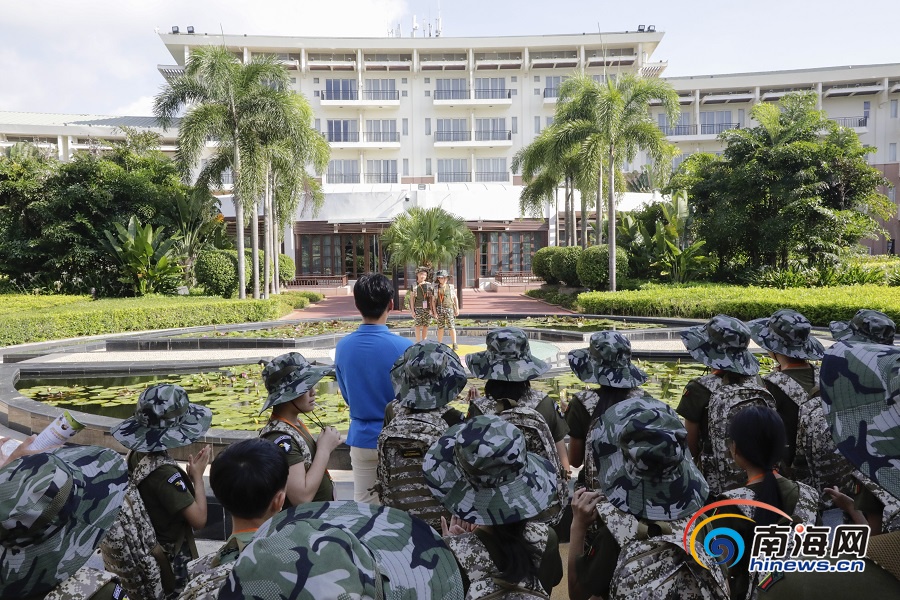導(dǎo)游帶領(lǐng)2019年瓊海市留守(困境)兒童夏令營(yíng)參營(yíng)小學(xué)員參觀博鰲亞洲論壇會(huì)址。南海網(wǎng)記者 李昊 攝