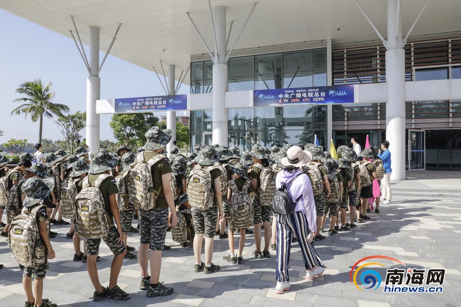 導(dǎo)游帶領(lǐng)2019年瓊海市留守(困境)兒童夏令營(yíng)參營(yíng)小學(xué)員參觀博鰲亞洲論壇新聞中心。南海網(wǎng)記者 李昊 攝