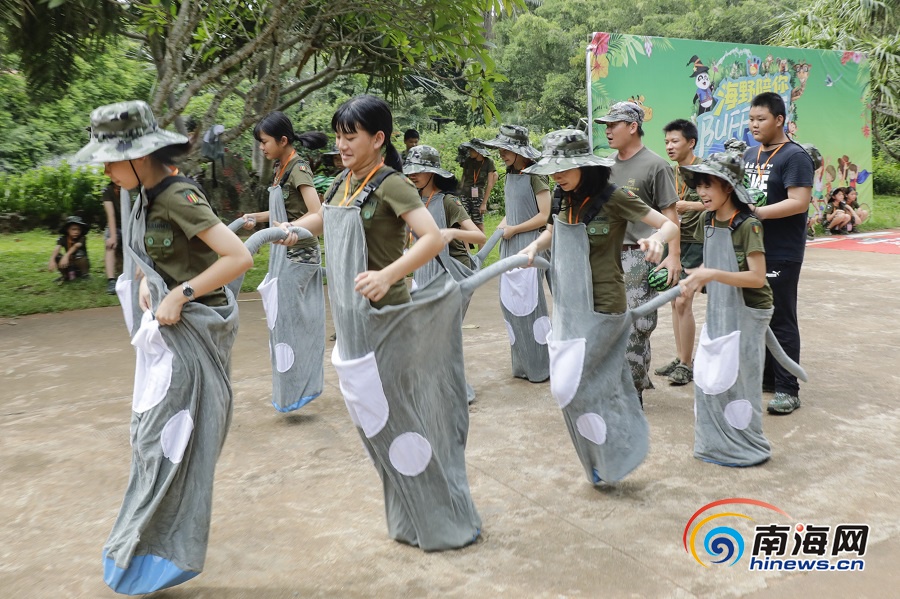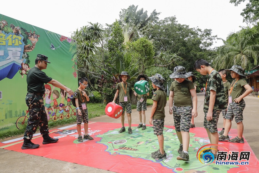 教官帶領瓊海留守(困境)兒童夏令營營員在海南熱帶野生動植物園做游戲。南海網記者 李昊 攝