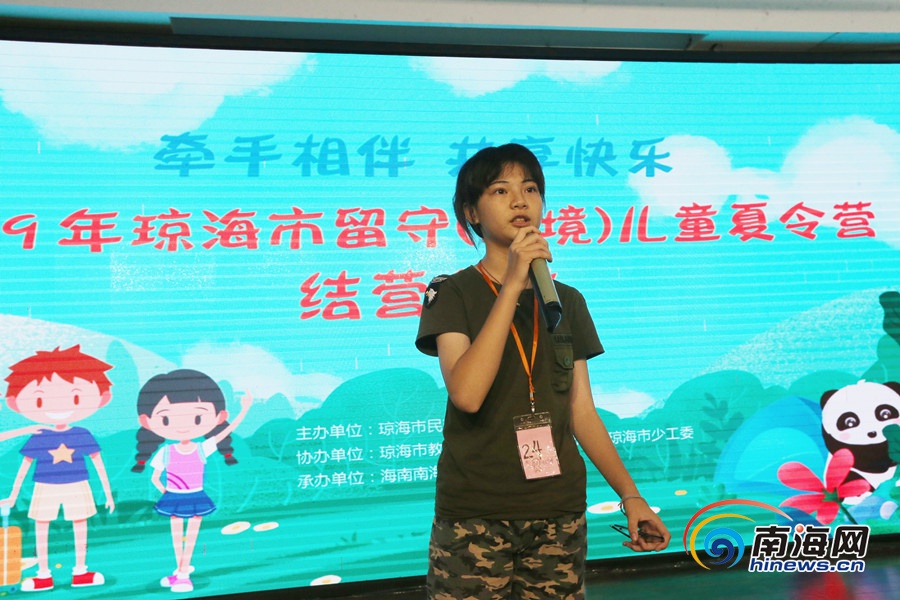 瓊海2019年留守(困境)兒童夏令營學(xué)員分享這次夏令營感受。 南海網(wǎng)記者陳望 攝