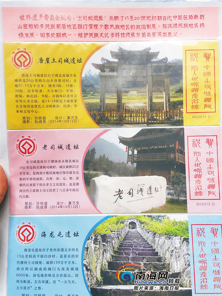 “包括剛剛入選的良渚古城遺址,我國的世界文化遺產已經有55處了,現今我收藏的這類門票已有50處,這幾年我還得加把勁,爭取把各種材料好好補充一下!”柯錦華坦言,他收藏了30多年,迄今為止,在海口幾乎沒有志同道合的藏友,也缺乏專業的收藏書籍指導。今后如何更好地進行歸類整理,他期盼能與藏友一起交流、分享。