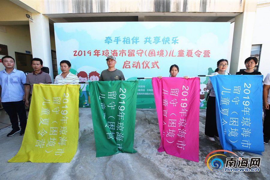 第二期瓊海市2019年留守(困境)兒童夏令營在瓊海市兒童福利院開營,給本次教官和老師授旗。南海網記者 陳望 攝