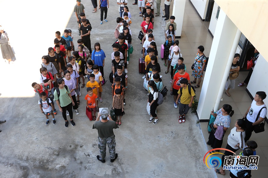 第二期瓊海市2019年留守(困境)兒童夏令營在瓊海市兒童福利院開營,教官正在現場點名。南海網記者 陳望 攝