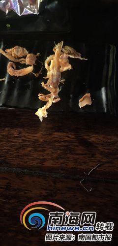 三亞市民餐吧用餐從魷魚干里吃出訂書釘 部門介入調(diào)查