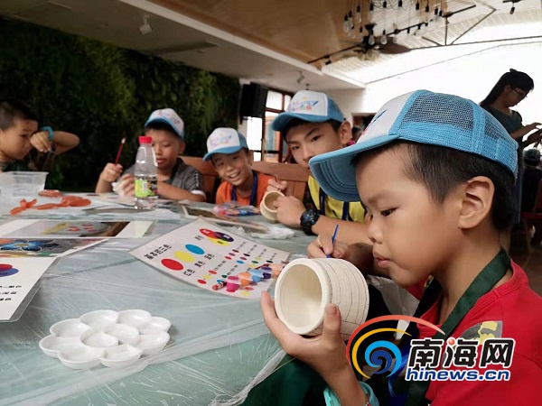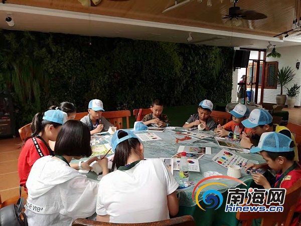 孩子們?cè)谔张枭螪IY圖案。南海網(wǎng)記者 蘇靚 攝