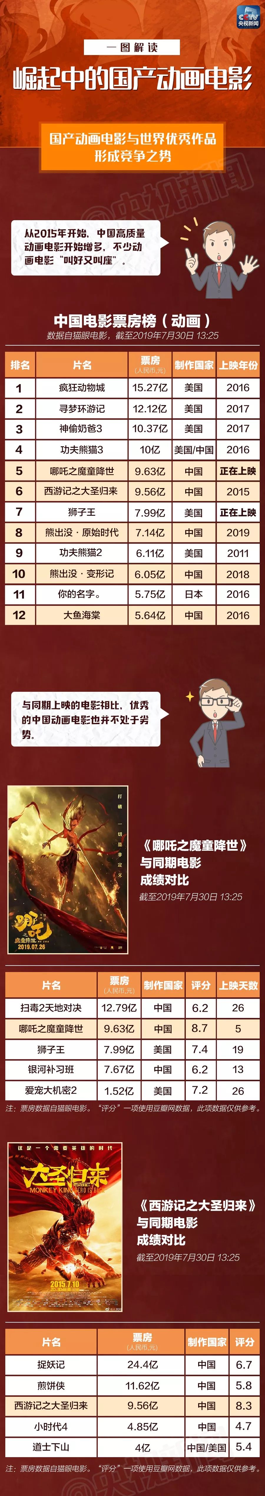 《西游記之大圣歸來》和《哪吒之魔童降世》這類國產(chǎn)動畫電影為何能獲得觀眾認可?國產(chǎn)動畫電影近年來的成績如何?中國動畫電影在哪些方面仍有不足?一張長圖,帶你了解↓↓↓