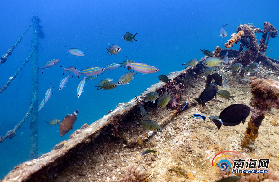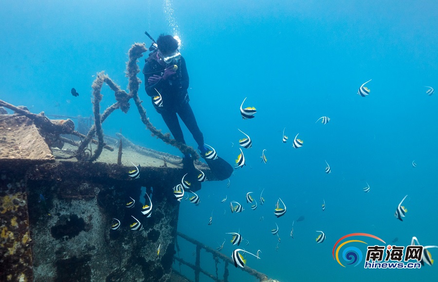 海南旅游頭條、南海網、南海網客戶端陵水7月30日消息(海報集團全媒體中心記者 武威 特約記者 童國強)近日,在陵水分界洲島旅游區附近海域的海底,一位潛水員在查看沉船周邊海洋生態情況。據悉,分界洲島通過投放大型鐵質沉船、飛機殘骸、珊瑚礁體等,以便于藻類生長、微生物繁殖,形成食物鏈,起到修復海洋生態資源的作用。這不僅吸引了海魚、珊瑚等海洋生物棲息覓食,也成為游客潛水觀光的一道海底特色景觀。