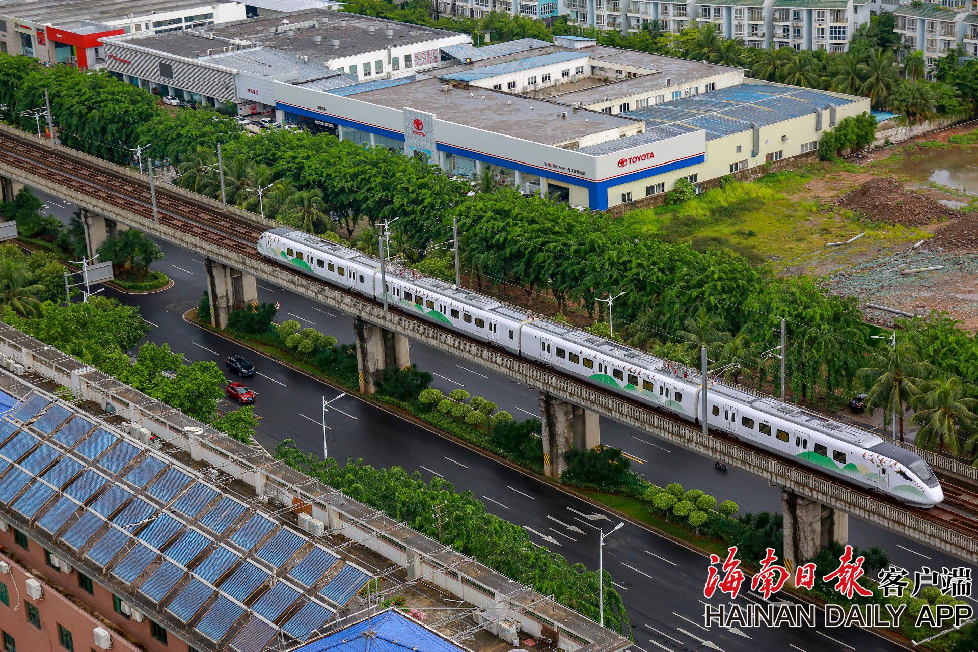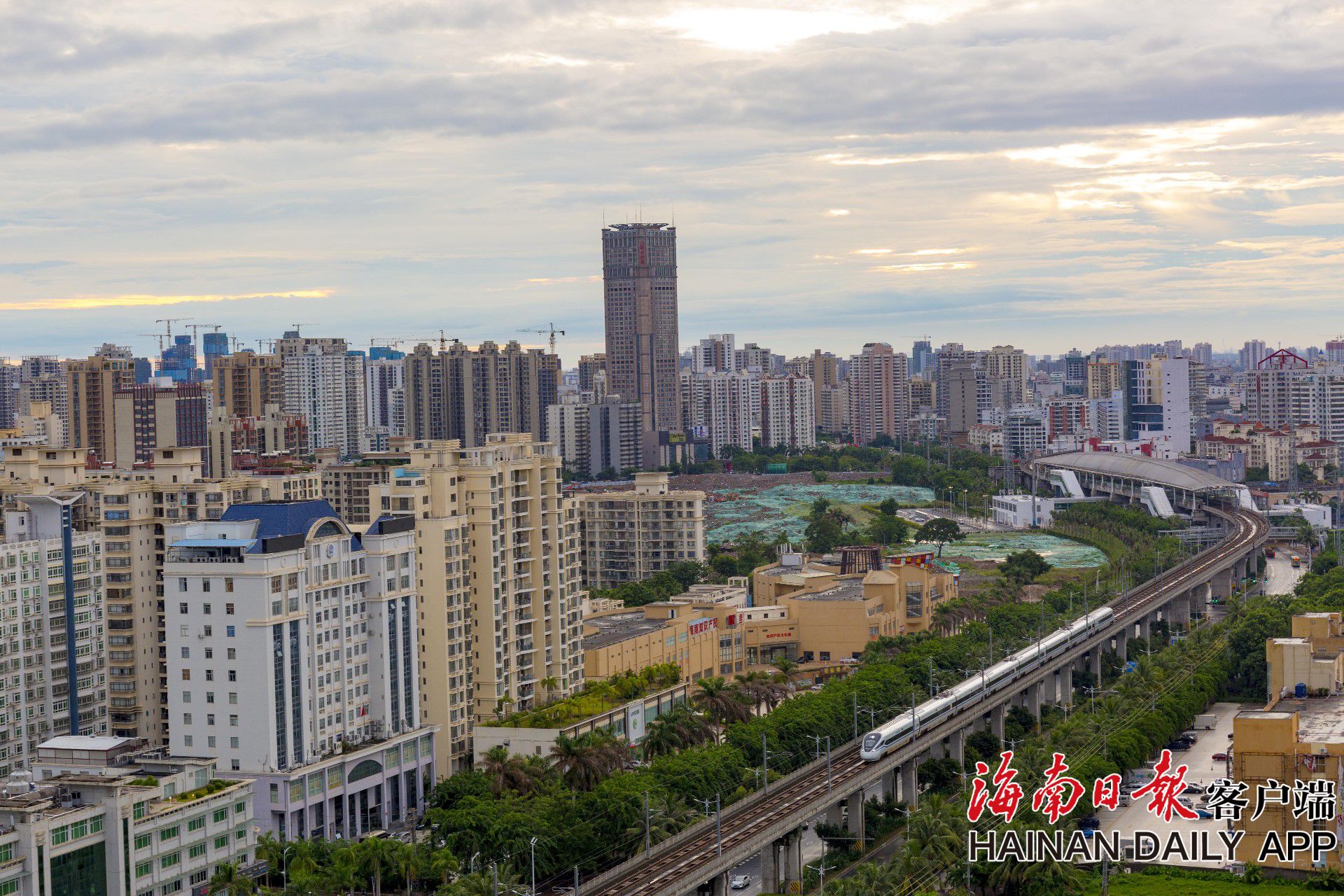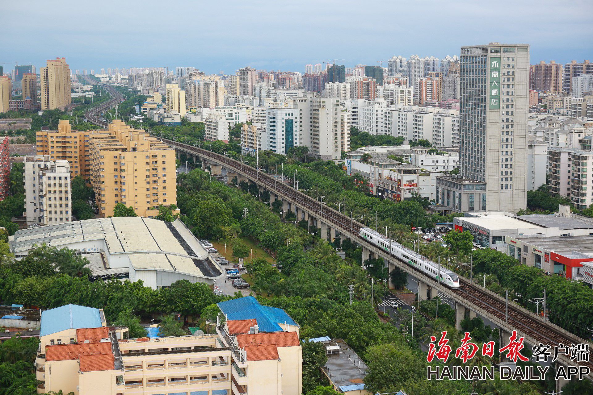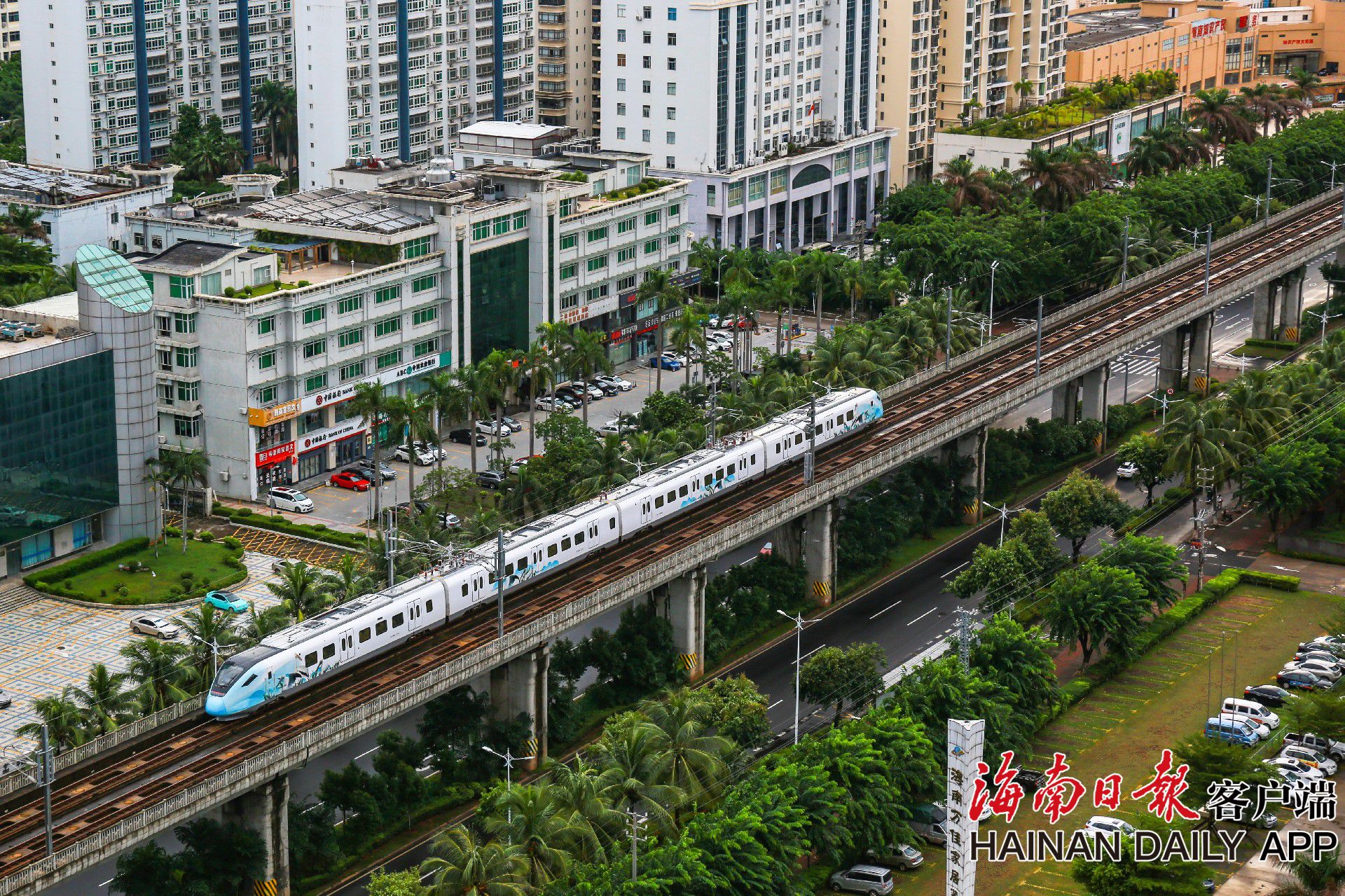 圖為列車在海口市南海大道上方往來穿梭。海南日報見習記者 李天平 攝