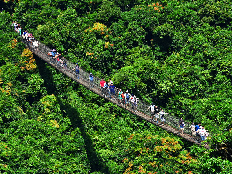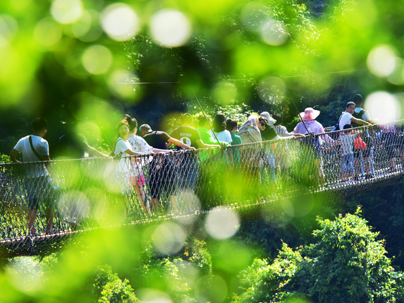 圖為中外游客暢游三亞亞龍灣熱帶天堂森林旅游區(qū)的情景。(黃慶優(yōu)攝)