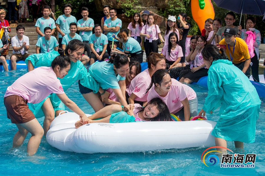 本次活動采用了大型充氣水池突出“嬉水狂歡”的核心元素,來自全國免費招募的70名相親嘉賓在水池中參與水上拔河、水中趕椰子、水底抓泥鰍等趣味水上活動。