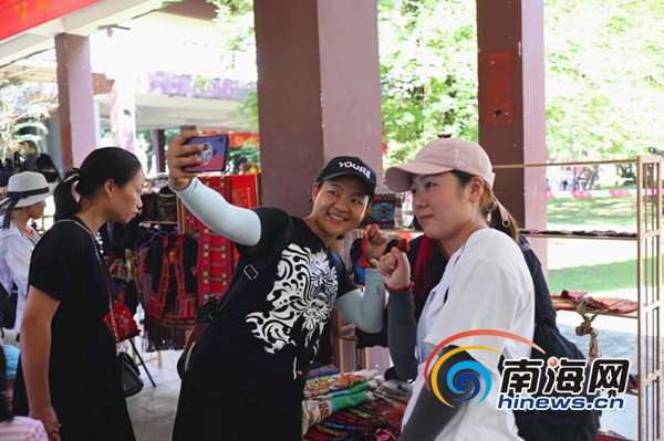 游客在保亭“非遺”集市上拍照留念。保亭旅文局供圖
