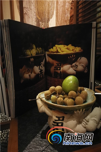 《中國海南菜》配圖用的陶瓷,擺放在酒店私人茶室中。 南海網(wǎng)首席記者 康景林 攝