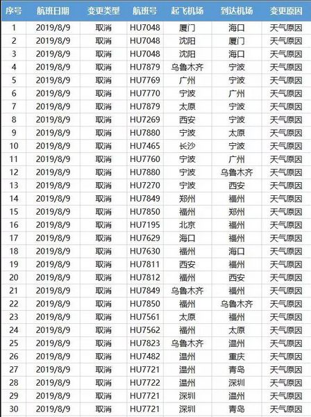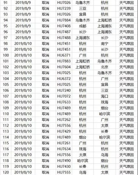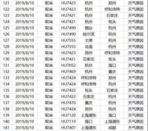 受臺風“利奇馬”影響 海南航空取消航班141班次