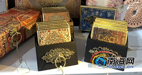 印度館里的純手工杯墊 南海網(wǎng)見習(xí)記者 鐘瑜 攝