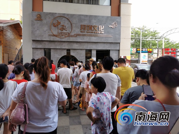 海口水晶宮月餅文化微型體驗館門口圍滿了顧客。圖片來源:海南水晶宮