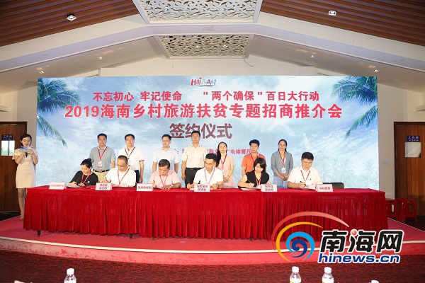此外,招商推介會上還舉行了項目簽約儀式,海口、三亞、儋州、文昌、澄邁、臨高、保亭等市縣負責人分別和企業(yè)進行簽約。“本次簽約合作的企業(yè)大約有10多家,有不少企業(yè)已經(jīng)到鄉(xiāng)村進行實地考察,本次合作能為鄉(xiāng)村旅游發(fā)展起到扶貧示范帶動作用。”海南省旅文廳全域旅游處處長李勇介紹道。