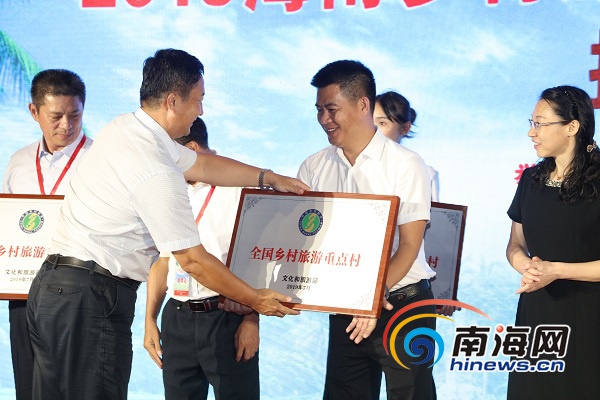活動現(xiàn)場,省旅文廳為8個全國鄉(xiāng)村旅游重點村進行授牌。南海網(wǎng)記者 蘇靚 攝