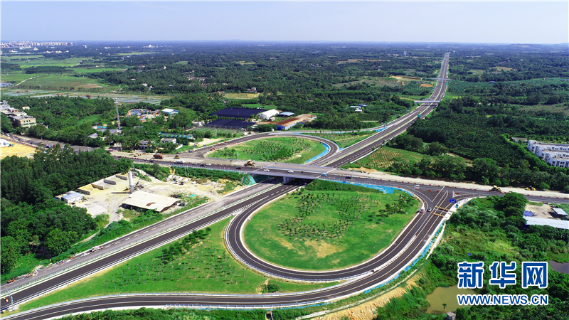 俯瞰正在修建的文瓊高速與村旁的213省道交匯。新華網(wǎng) 黎多江 攝