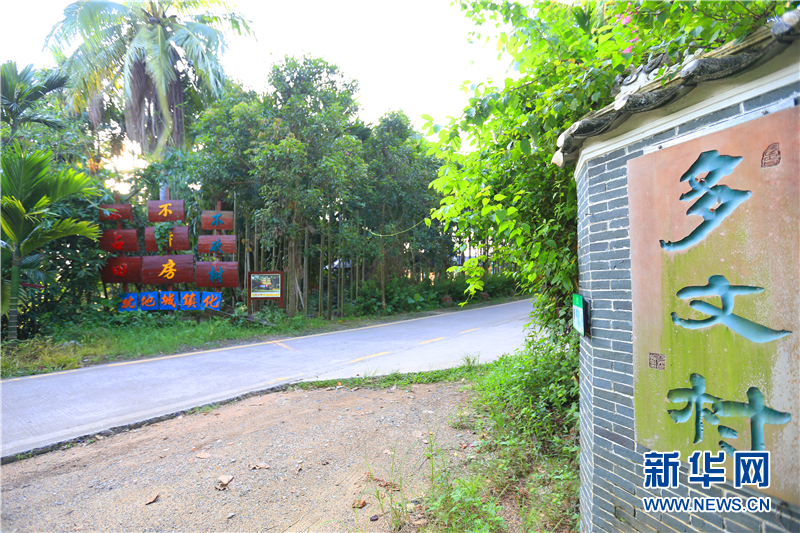 徑直駛?cè)臊垑垩笕f(wàn)畝田野公園,幾分鐘便可進(jìn)入村口,蔥蘢的綠植分布在道路兩旁,嵌在道路右側(cè)墻壁上的多文村村牌,與對(duì)面“不占田、不砍樹、不拆房,就地城鎮(zhèn)化”的宣傳標(biāo)語(yǔ)相互映襯。檳榔樹下隨意擺放的陶罐凸顯村莊的年代感,墻圍上勵(lì)志圖和扇形詩(shī)詞板為古樸的鄉(xiāng)村增添了色彩,三兩村民在自家門前閑話家常,好不愜意。一幅亮麗、文明、和諧的美麗鄉(xiāng)村新畫卷也就此徐徐展開。