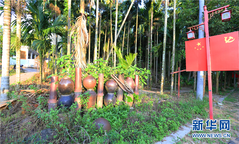 檳榔樹下擺放的陶罐。新華網(wǎng)發(fā)(陳嘉煒 攝)