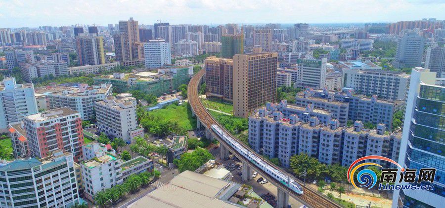 8月28日,一列市域列車經過海口市南海大道路段。海報集團全媒體中心記者 張茂 攝