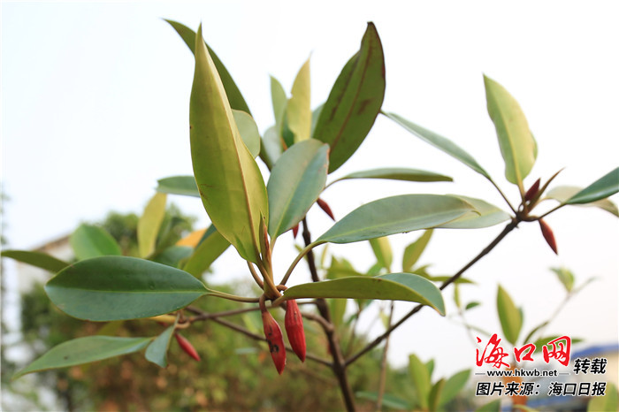 2017年3月中旬,海口在美舍河東風橋段開始種植第一批城市紅樹林。果然,沒多久,種進美舍河的紅樹假植苗就開始抽新葉開花了。