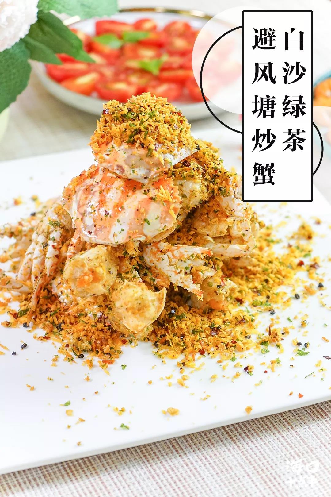 避風塘炒蟹原是香港名菜,但經過大廚的創新,加入了白沙綠茶,為它增添了幾分海南風味。
