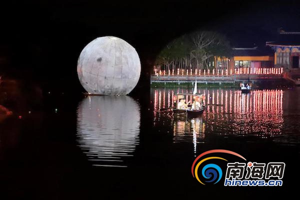 與此同時,該景區(qū)中央湖升起了一輪巨大的人工“團(tuán)圓月”,一時間景區(qū)燈火璀璨、鼓樂齊鳴,為節(jié)日注入濃濃的團(tuán)圓、喜慶氛圍,游客們爭相拍照留念。