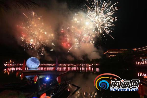 祭月儀式結(jié)束后,文筆峰煙花齊放,焰火耀空,博餅會、DIY蟾宮月月餅、女紅乞巧、猜燈謎、月光詩會等以“月”為題的活動百花齊放,六艘游船不時穿梭在湖面,帶游客湖中賞月品月,游客大呼過癮。