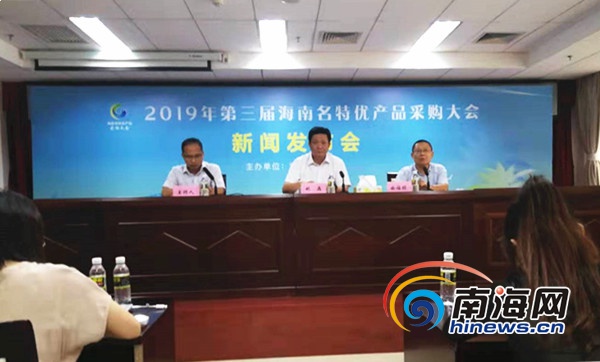 海南旅游頭條、南海網、南海網客戶端???月16日消息(南海網記者 任桐)9月16日下午,海南省商務廳在省政府辦公大樓舉辦2019年第三屆海南名特優產品采購大會新聞發布會。南海網記者從會上獲悉,本次采購大會將于9月19日至21日在海南國際會展中心舉行,截至目前,已有來自省內、外367家企業近1500人參會。