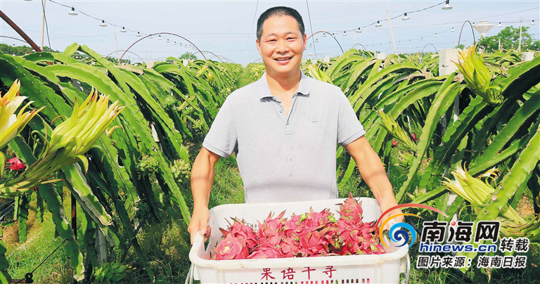 9月14日,在位于昌江烏烈鎮的火龍果生產基地,火龍果的豐收讓農戶喜笑顏開。海南日報記者 陳元才 通訊員 楊耀科 攝