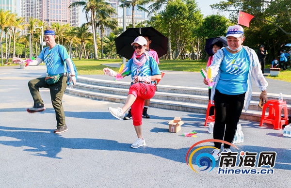 下午3點半,隨著發令響起,選手們如離弦之箭沖出起點,通過地圖指示,尋訪了騎樓老街、秀英炮臺、海口灣、海口萬綠園、海南大學等海口特色景點景區,完成中山路拼圖、綁腿短跑、指壓板跳繩、紅色競猜等多項趣味任務。青春的身影貫穿海口的大街小巷,體會海口的人文底蘊、時尚幸福,以全城嗨動的運動熱潮慶祝新中國成立70周年。