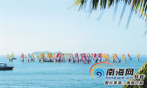 三亞灣上揚帆起航。武昊 攝