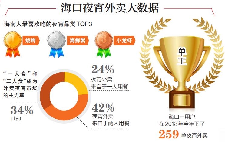 美團大數據顯示,椰城夜宵“單王”去年下了259單,有人一頓外賣花了3321元