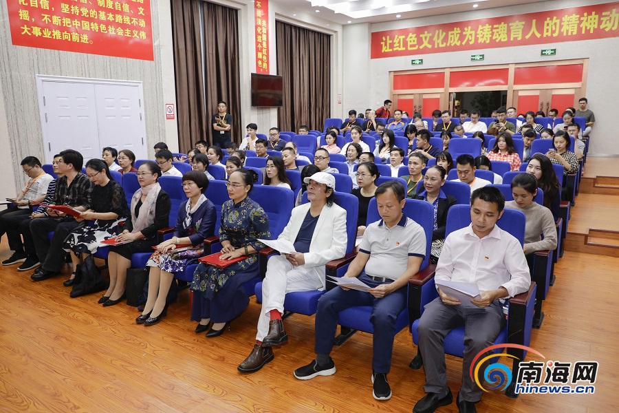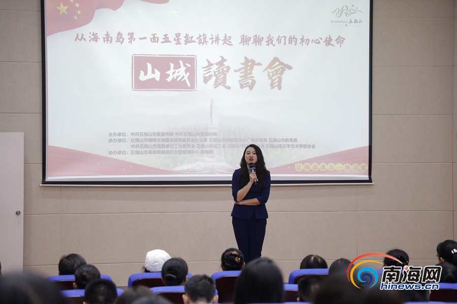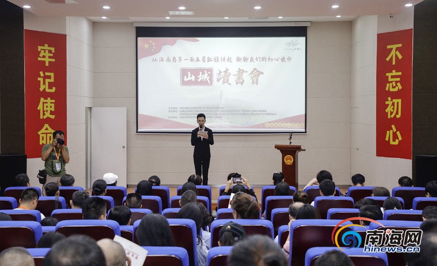 在報告廳,書友們認真聆聽關于初心和使命的故事。書友會共分三個篇章,在第一篇章《初心》中,微黨課視頻《海南島第一面五星紅旗如何升起》通過尋訪當年升旗儀式的瓊崖革命老戰士、黨史專家等人,共同講述了海南島升起的第一面五星紅旗背后的故事。五指山市委宣傳部常務副部長符厚剛說,“這次讀書會意義重大,希望通過采訪團的鏡頭和文字,將海南島第一面五星紅旗在五指山升起的故事傳得更遠、傳得更廣?!?/span>