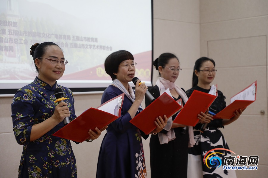 采訪團在五指山革命根據地紀念園參加山城讀書會。南海網記者 李昊 攝