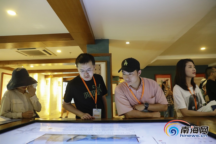 移步換景,采訪團走進天涯文化苑,觀看珍貴的歷史照片和樸實的文化展物,探尋由來已久的獨特天涯文化。天之涯,海之角,千年滄海桑田,見證歷史巨變。崖州知州程哲在巨石刻下“天涯”二字,盡抒“海上生明月,天涯共此時”的遼闊胸襟;民國時期王毅將軍則刻下“海角”一詞,聊表“亂石穿空,驚濤拍岸”的果敢壯志。這一個個生動無比的故事,將天涯文化一一展現在采訪團眼前。