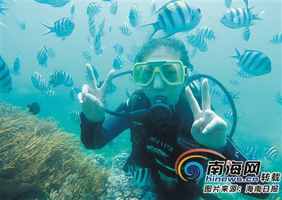 游客在三亞蜈支洲島潛水。 本報(bào)記者 武威 攝
